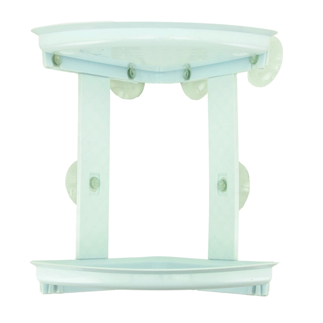 2 Shelf Shower Caddy with Suction Cup Mounts for Corner of Shower Wall