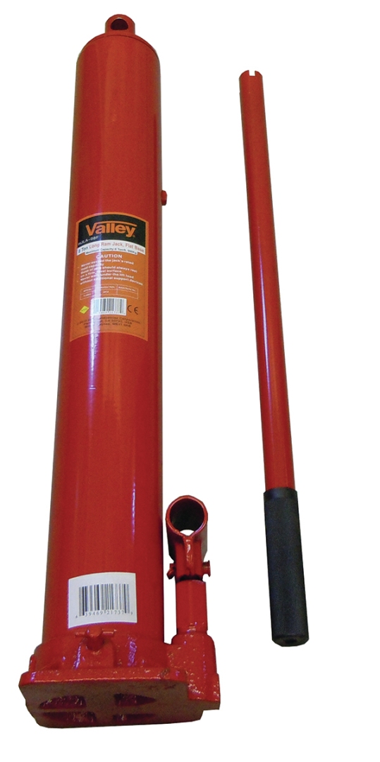 The hydraulic ram extends from 24 to 44-1/2 Baked enamel finish with lead free paint to prevent rust | Large 5 x 4-1/2 flat base for stability